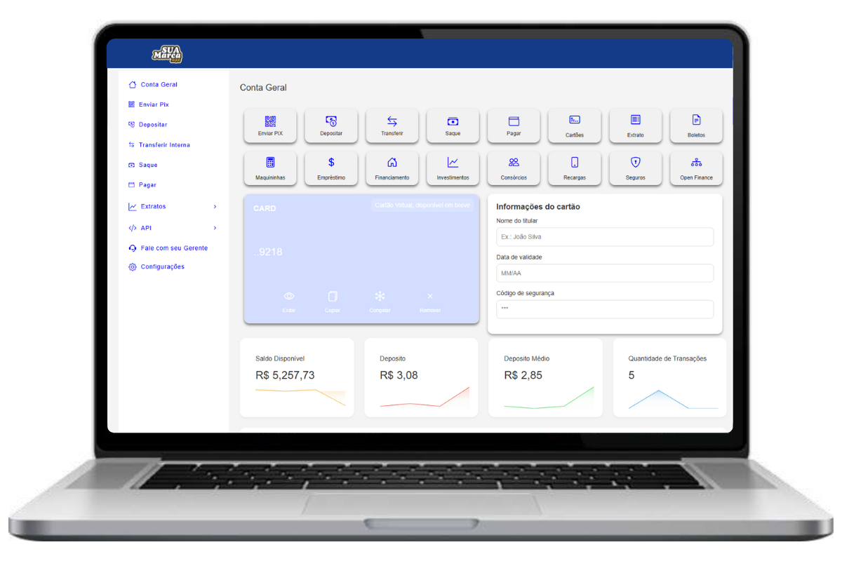 CONTA DIGITAL: Você também contará com um aplicativo onde seus clientes poderão realizar transações, permitindo que você lucre com as movimentações dos usuários.